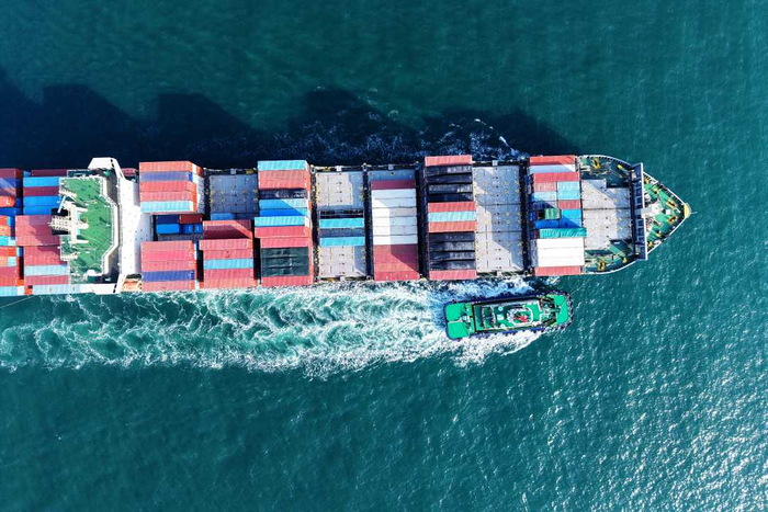 5月12日,山东港口青岛港,装载外贸集装箱的货轮驶入港口。青岛海关发布消息,今年前4个月,黄河流域九省区进出口2.05万亿元,同比增长8.8%。