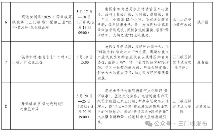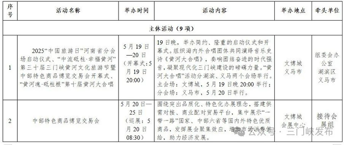 第三十届三门峡黄河文化旅游节暨中部 特色商品博览交易会活动一览表
