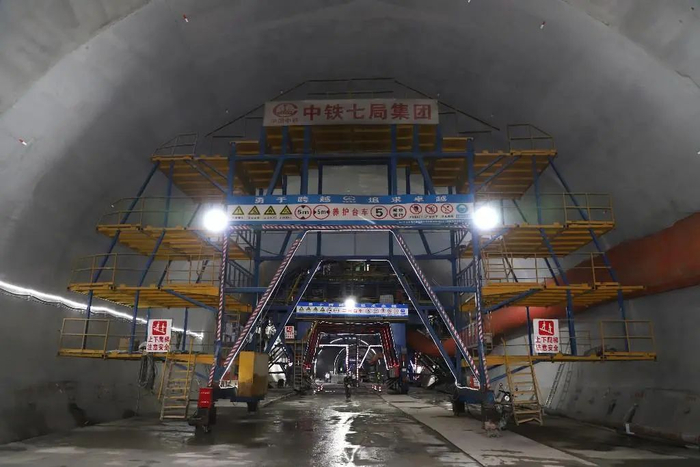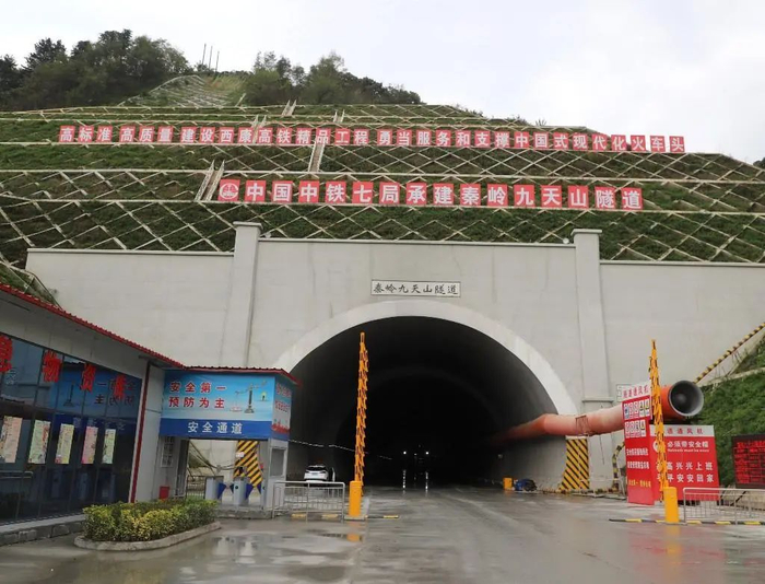 秦岭九天山隧道位于陕西省商洛市柞水县与镇安县交界处,地处南秦岭中山区核心地带,隧道全长13.3公里,为单洞双线隧道,最大埋深达1200米,是西康高铁全线二级高风险隧道和重点控制性工程,由西成铁路客运专线陕西有限责任公司建设、中铁七局集团有限公司承建。