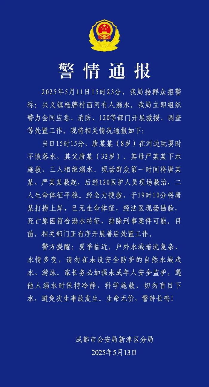 5月13日,成都新津公安发布通报: