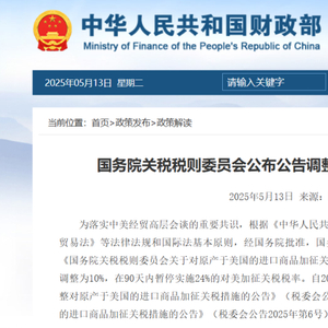 官宣!中方调整对美关税:对原产于美国进口商品加征关税税率由34%调整为10%