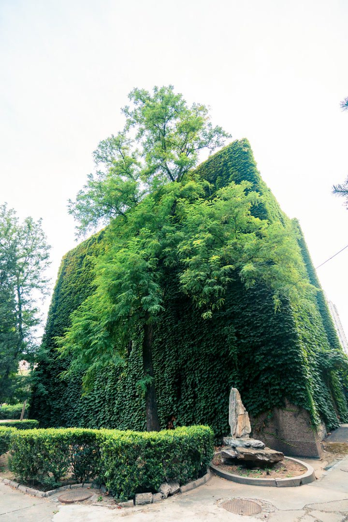北光厂光学楼外立面上有很多爬山虎