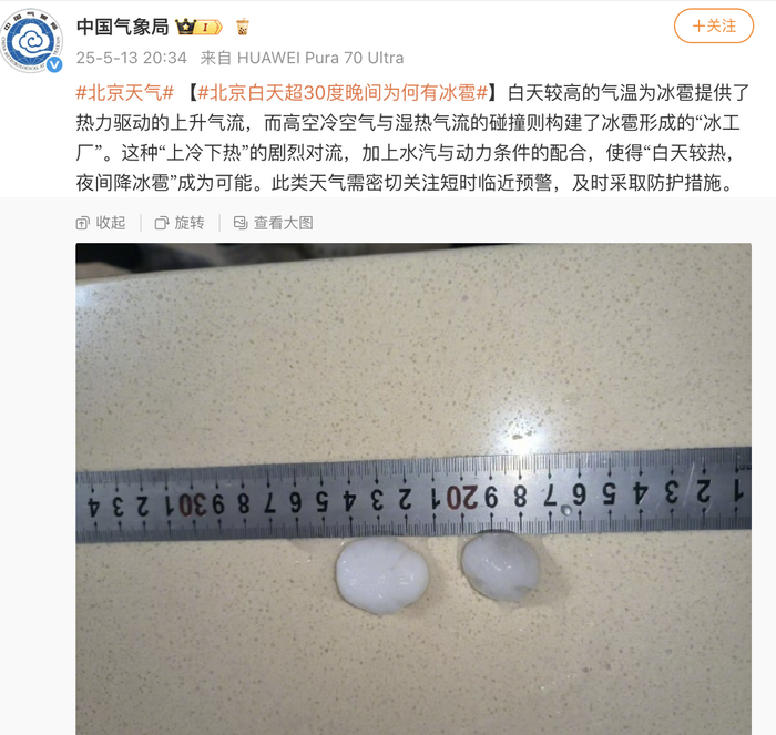 今天,北京白天气温超30℃,晚间为何下起了冰雹?