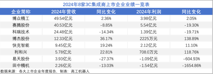 仅就8家企业披露的2024年度经营数据来看,3C行业系统集成商分化严重,4家企业营收、利润双下滑,4家企业营收和利润均实现正向增长。
