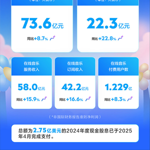 业务层面,核心数据——付费用户和付费率也沿着过去几个季度的上升曲线平稳发展。季度内,在线音乐付费用户数同比增长8.3%至1.229亿,单个付费用户月均收入(ARPPU)从2024年同期的10.6元增长至11.4元。