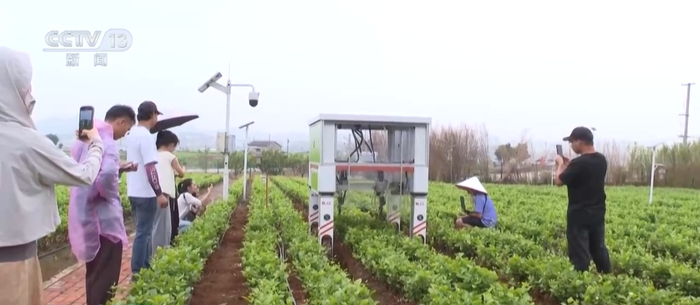 在广西横州市中华茉莉园,高约2米的四方体机器人正在采摘茉莉花,它通过顶部视觉传感器,触手精准捏住花托,将含苞待放的茉莉花轻轻摘下存入储花舱。新采的茉莉花随即被装入货箱,由无人机将采摘下来的茉莉花运送至花市交易,再将交易后的茉莉花运送至茶企生产车间。相关负责人介绍,这几年,横州市茉莉花产业不断转型和升级,比如茉莉花智能采摘机器人正在调试当中。下一步,做好初代模型机升级,提升采摘效率。