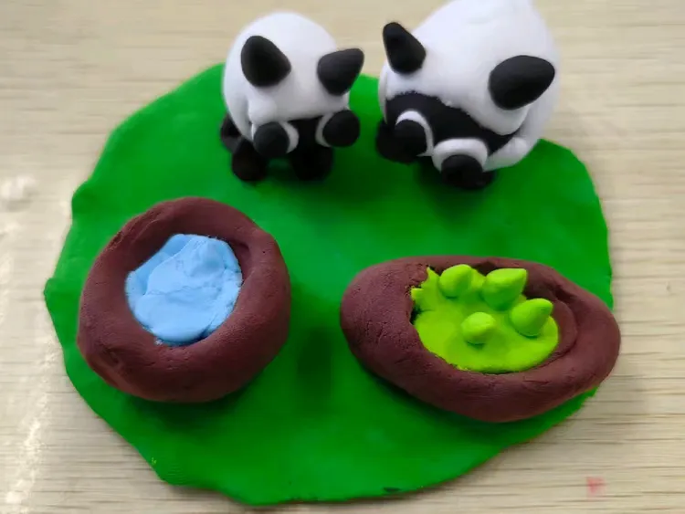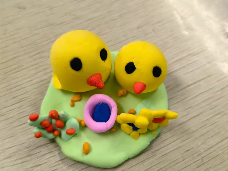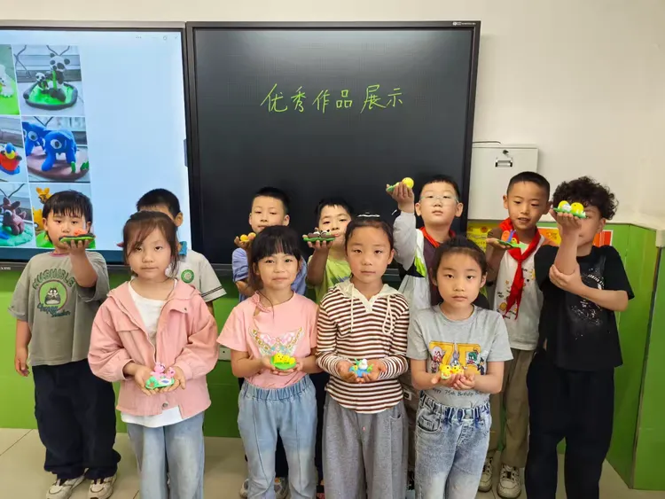 《和妈妈在一起》这一课同学们运用泥塑的方法捏出一个小动物和妈妈在一起的场景,表现出动物母子的亲情。