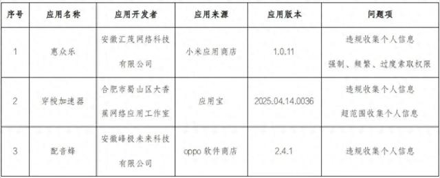 记者昨日获悉,安徽省通信管理局发布关于下架3款侵害用户权益APP的通报,针对2025年第2批次整改不到位的APP,该局已对相关APP予以公开通报,并要求限期整改。截至目前,尚有3款APP逾期未完成整改,现组织对上述APP进行下架,相关应用商店应在本通报发出后,立即对名单中的应用软件进行下架处理。