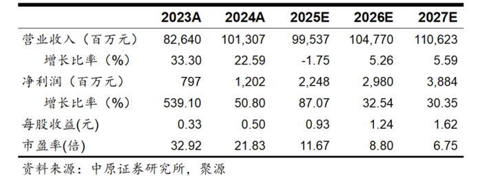 事件:公司公布2024年年报与2025年一季报,2024年公司实现营业收入1013.07亿元,同比增长22.59%,实现归属母公司的净利润12.02亿元,同比增长50.80%,扣非后的归母净利润9.34亿元,同比增长105.39%,基本每股收益0.51元。2025年一季度,公司实现营业收入194.20亿元,同比下滑8.01%,净利润6.11亿元,同比增长5.36%,扣非后的净利润6.00亿元,同比增长11.69%,基本每股收益0.26元。