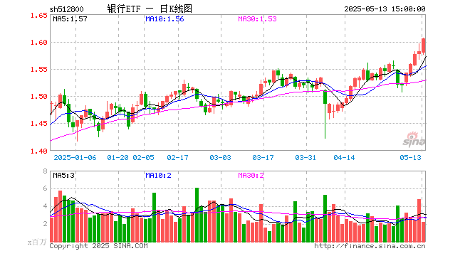 5月13日银行ETF(512800)份额增加630.00万份,最新份额51.20亿份,最新规模82.20亿元