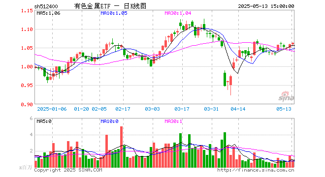 5月13日有色金属ETF(512400)份额增加350.00万份,最新份额43.90亿份,最新规模46.57亿元