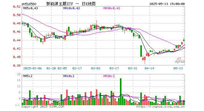 5月13日新能源主题ETF(516580)份额减少200.00万份,最新份额2.13亿份,最新规模9358.28万元