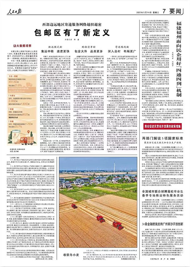 人民日报:西部边远地区寄递服务网络越织越密,包邮区有了新定义