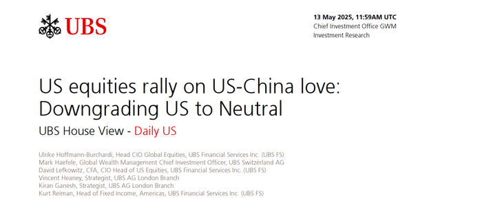 华尔街狂欢中的唯一“清醒者”?瑞银下调美股评级 看好中国科技股