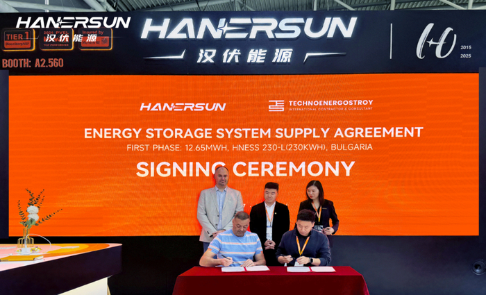 Intersolar Europe展会首日,汉伏能源与保加利亚知名EPC企业TECHNOENERGOSTROY签署全年光伏组件与储能系统供货协议。作为保加利亚首批获得欧盟核心补贴计划支持的储能并网项目之一,该项目具备显著的市场示范效应,标志着汉伏能源在欧洲能源战略版图上的又一次突破,也彰显了双方在欧洲储能市场拓展上的坚定信心与深度合作意愿。