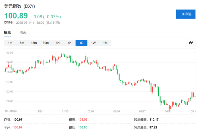 在中美关税谈判超出市场预期之后,美元指数一度反弹,创下一个月以来最高。