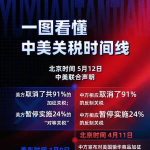 当地时间5月12日,中美日内瓦经贸会谈联合声明发布,双方大幅降低双边关税水平,这一举措符合两国生产者和消费者的期待,也符合两国利益和世界共同利益。关税是如何变化的?一图看懂。