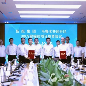 5月13日,乌鲁木齐经济技术开发区(头屯河区)与新疆投资发展(集团)有限责任公司(以下简称“新投集团”)正式签署投资协议,新投集团将在经开区(头屯河区)白鸟湖片区规划建设100万锭棉纺项目,总投资35亿元。