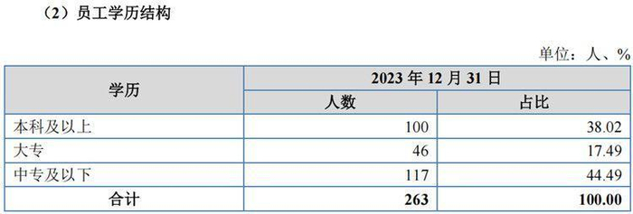 截至2024年12月31日,德芯科技拥有研发人员89人,占比为34.1%;截至2023年12月31日,该公司的大专及大专及以下员工数量为163人,占员工总数的61.98%。