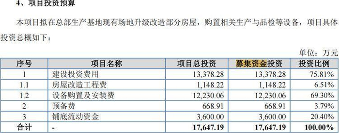 德芯科技募资的第一个项目是总部生产基地技改建设项目。招股书显示,该项目建设总投资17,647.19万元,建设期2年。该项目拟通过引进一批国内外先进生产、测试设备,同时对总部生产基地进行智能改造升级,从而有效提升公司自主检测能力,提高智能化制造水平。