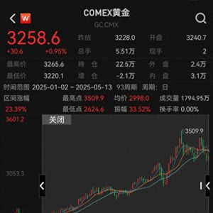 5月12日,国际金价跳水。伦敦现货黄金跌2.73%,盘中一度跌破3220美元/盎司;COMEX黄金收跌3.06%,报3241.8美元/盎司。