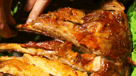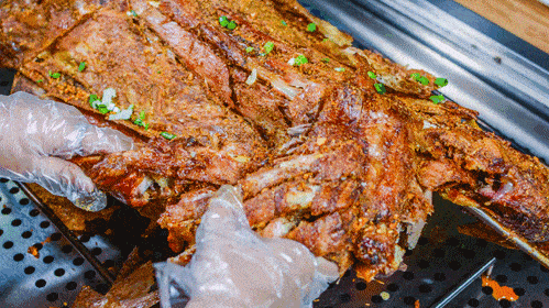 采用牛肋骨烘烤而成,肥瘦相间,口感细嫩。
