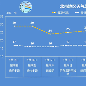 周四至周五(5月15日至16日),北京以晴到多云为主,适宜户外出行;预计周五夜间至周六(17日)白天还有明显北风,周日(18日)天气转阴,雷阵雨再度登场,请关注临近预报,提前做好出行计划。
