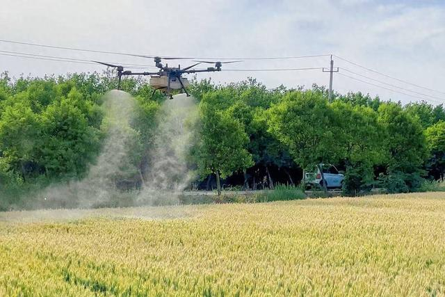 近日,在河南省许昌市东城区祖师街道辛集社区广袤的麦田上空,无人机正依据提前规划好的航线,在田间来回作业。随着螺旋桨高速旋转,含有杀虫剂、杀菌剂、叶面肥的混合药液均匀细密地喷洒而下,为小麦生长提供全方位“呵护”。