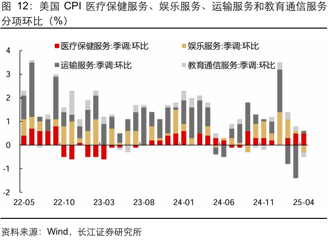 综合而言,住房通胀虽有抬头,但领先指标Zillow租金指数指向未来主要住所CPI稳中趋降,加之其他分项表现也相对稳定,美国核心服务通胀压力可控。