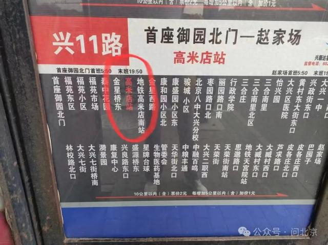 5月13日,唐女士也告诉“问北京”记者,当天,她再次乘车时发现,高米店站(金星桥西站)已经加装了兴11路站牌,且站牌命名为“高米店站”,与848路统一。