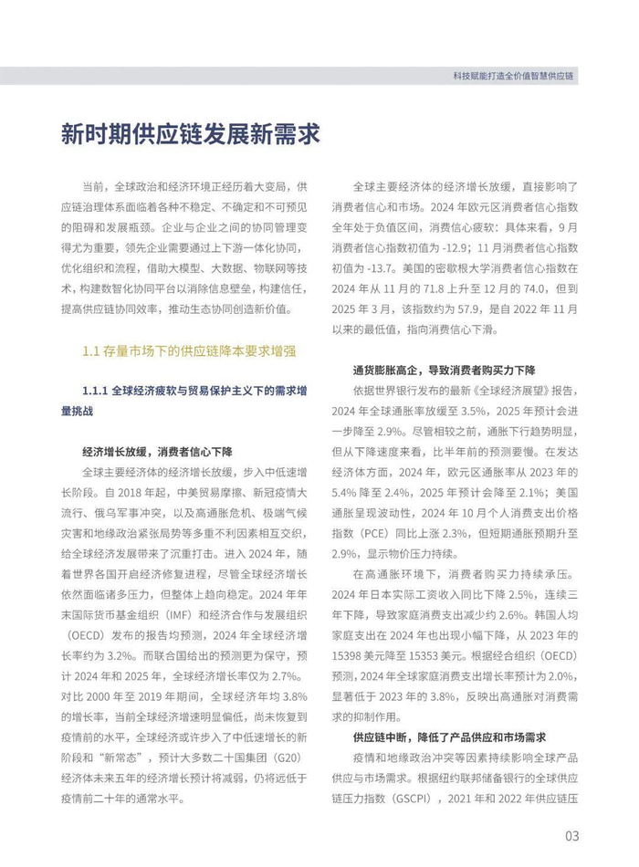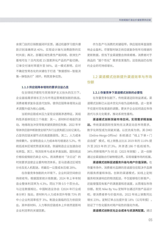 报告指出,全球经济疲软、贸易保护主义、需求结构复杂化等因素,促使供应链降本增效需求凸显。同时,渠道模式创新、双碳目标、数字经济等因素推动供应链绿色化和数智化转型。报告强调,供应链思维模式正发生重大变革,从传统成本控制向全局优化、精益改进、规划思维等多维度转变。供应链模式创新持续加强,数智化驱动上下游一体化发展,提升产业竞争力。双碳战略引领供应链绿色变革,跨行业合作与资源共享推动平台化建设。
