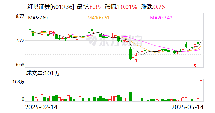 证券板块拉升 红塔证券涨停 东方财富官微 2025.05.1413:25 关注 人民财讯5月14日电,证券板块拉升,截至发稿,红塔证券涨停,华泰证券、锦龙股份、广发证券、国联民生等涨幅居前。(文章来源:人民财讯)