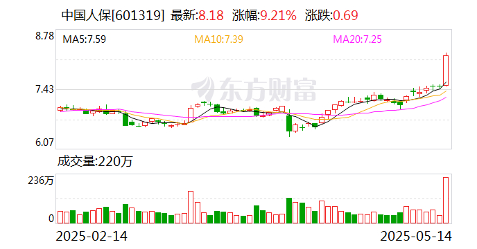 保险板块亦走强,截至发稿,中国人保涨停,中国太保涨近8%,新华保险涨超6%,中国人寿、中国平安涨逾4%。