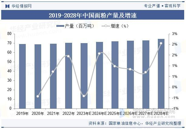 不同种类的面粉具有各自的用途,面制品是世界上最重要的也是中国北方大部分地区的主食,用面粉制成的食物在花色品种、制作工艺、口感风味上千变万化,满足了消费者对食物的多样化追求。据统计,2019-2022年,我国面粉产量从69.2百万吨增长至70.4百万吨,预计2028年将达到74.5百万吨。