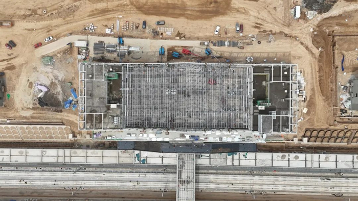现阶段,站台雨棚、综合设备机房以及信号、办公、宿舍综合楼等主体建筑均已竣工,雨棚涂装工程完成进度达 85%。后续,工程将全面转入站房及生产生活用房的内外部装饰装修阶段。