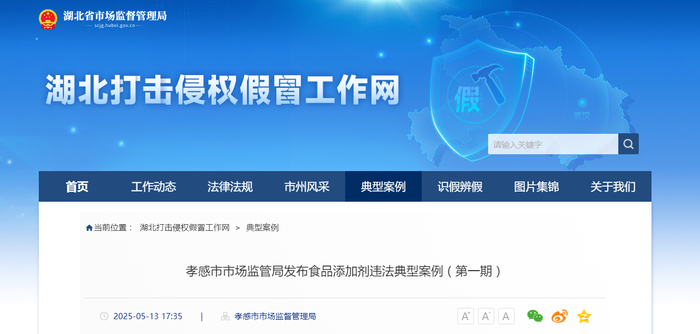 湖北省孝感市市场监管局发布食品添加剂违法典型案例(第一期)