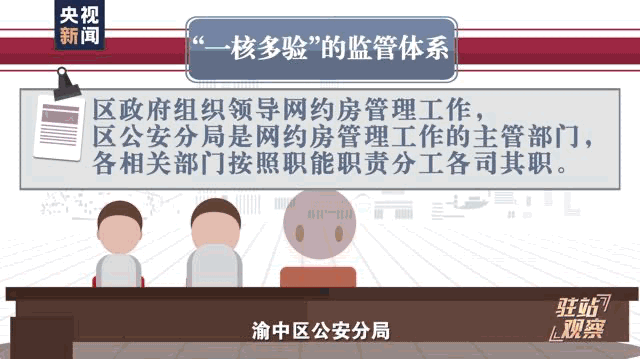 2024年12月,在重庆市公安局指导下,《重庆市渝中区网约房管理试行办法》正式出台:渝中区公安分局作为网约房管理工作的主管部门,首先对网约房经营者提交的场所名称、地址等基础信息进行真实性核验,随后通过政务协同平台将数据同步推送至住建、卫生、消防等监管部门。各监管部门依托数字化平台开展并联审批,重点核查房屋结构是否改造、卫生安全标准是否达标、消防设施配置是否齐全等方面,核验通过后,经营者将获得房源码。