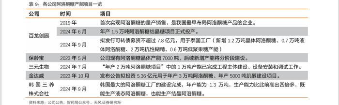可以看到,目前百龙创园阿洛酮糖产能领先,且有在建扩产项目。
