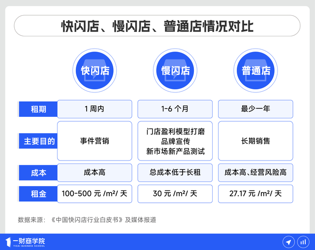 与快闪店相比,慢闪店拥有更长时间的曝光机会,能够尽可能触达更多的消费群体,帮助品牌获得更好的宣传效果;与普通店型相比,慢闪店“面积小、时间短、成本低”,更具有灵活性,方便品牌及时调整。