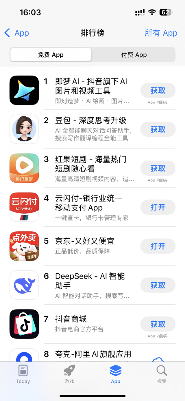 加大投放?字节即梦AI两天内迅速登顶苹果中国区免费榜