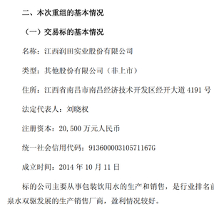 公告显示,本次交易事项尚处于筹划阶段,初步确定的交易对方为包括江西迈通健康饮品开发有限公司(以下简称“江西迈通”)及江西润田投资管理有限公司,其中江西迈通为公司控股股东江西省旅游集团股份有限公司控股100%的下属公司。本次交易对方的范围尚未最终确定,公司后续将推动标的公司其他股东参与本次交易,最终确定的交易对方以后续公告的重组预案或重组报告书披露的信息为准。