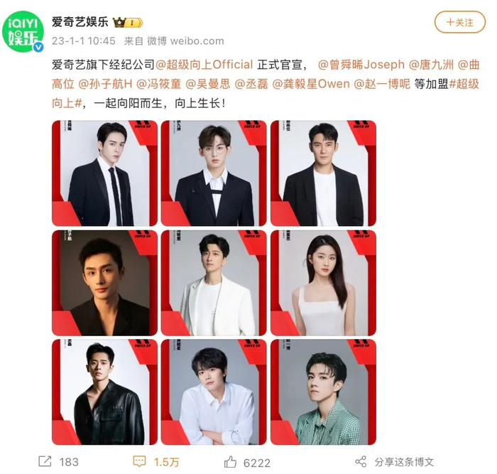 爱奇艺“太子太女”,指的是与爱奇艺平台深度捆绑、被平台力捧的艺人,如陈哲远、沈羽洁、曾舜晞等人。他们与平台关系匪浅,陈哲远、沈羽洁的经纪公司为爱奇艺旗下直属经纪公司果然娱乐;而曾舜希、丞磊签约的超级向上,同为爱奇艺旗下公司,企查查显示爱奇艺持有超级向上95%的股份。