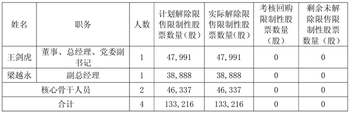 本次解锁的限制性股票数量为13万股,占公司现总股本的0.0046%,将于2025年5月20日上市流通,具体如下:
