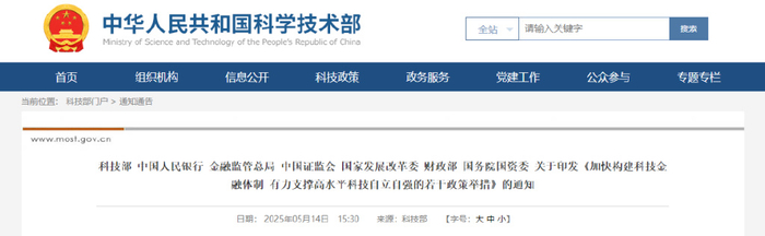 为深入贯彻党的二十大、二十届三中全会精神,认真落实全国科技大会、中央金融工作会议部署,构建同科技创新相适应的科技金融体制,加强对国家重大科技任务和科技型中小企业的金融支持,科技部、中国人民银行、金融监管总局、中国证监会、国家发展改革委、财政部、国务院国资委联合制定了《加快构建科技金融体制 有力支撑高水平科技自立自强的若干政策举措》。现印发给你们,请遵照执行。