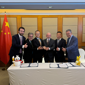▲巴西总统卢拉(右三)与美团公司创始人、CEO王兴(左三)会面,并见证签署投资协议