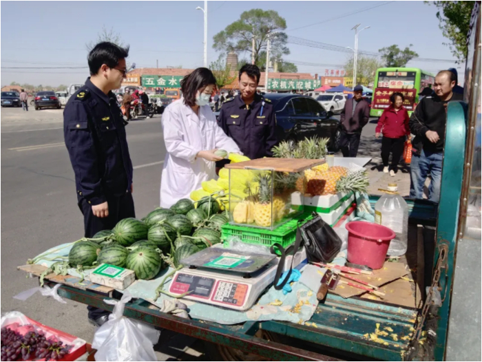 执法人员深入旅游景区、庙会、大型商超、农贸市场等重点区域,针对其经营加工制作使用的蔬菜、鲜肉、食用油、水果等关注度高、使用率高的重点产品,严格按照相关操作规程,对食品的农药残留、兽药残留、过氧化值等指标进行了快检。同时,执法人员积极向各经营者宣传了《中华人民共和国食品安全法》及食品安全有关知识,鼓励过往群众积极参与“你点我检”活动,将检测关口不断前移,及时公布抽检结果,向广大群众传递食品安全“好声音”,让食品安全监管触角延伸到老百姓生活最前沿,切实把好食品安全入口关。
