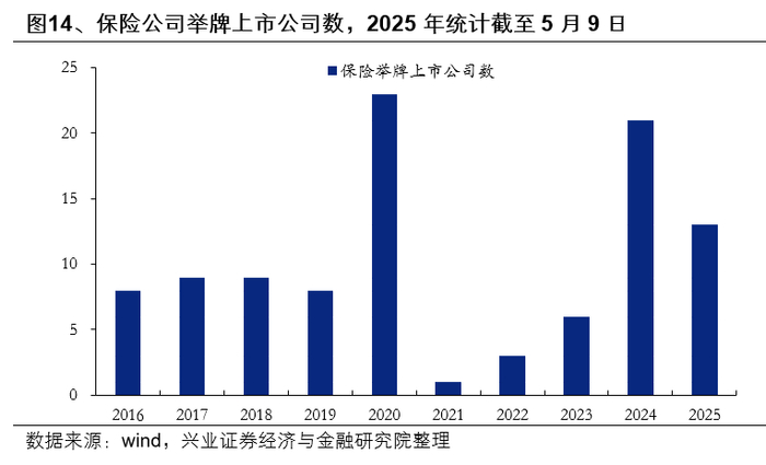 一季度保费收入增速回落,但2、3月份边际改善,考虑到当前长债利率处于历史底部区间,险资对于权益资产的配置需求仍处于上升期。2025年一季度保费累计收入同比增长0.93%,相较于2024年全年增速11.15%明显下滑,主要受2024年高基数+利率下调导致产品吸引力减弱+前期炒停售提前消耗客户资源等因素影响。但随着影响因素的边际减弱,2、3月份以来保费增速已经逐步改善回升。考虑到当前长债利率处于历史底部区间,险资对于权益资产的配置需求旺盛。此外,监管政策持续鼓励险资加大资本市场投资力度,年初“大力推动中长期资金入市”方案中,提出“鼓励保险资金稳步提升投资股市比例,大型国有保险公司要发挥“头雁”作用,力争每年新增保费的30%用于投资股市”;在5月7日“稳市场稳预期”新闻发布会上,李云泽表示,后续将出台八项增量政策,其中包括“进一步调降保险公司股票投资风险因子”。
