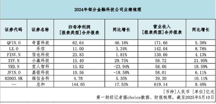 截至记者发稿,奇富科技(QFIN.O)、乐信(LX.O)、信也科技(FINV.N)、小赢科技(XYF.N)、宜人智科(YRD.N)、嘉银科技(JFIN.O)、维信金科(02003.HK)7家上市金融科技公司披露了2024年财报。