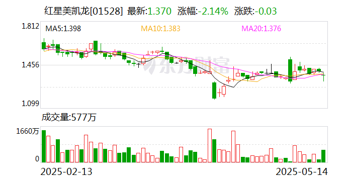 5月14日,截至收盘,红星美凯龙A股跌1.36%报2.91元/股,总市值为126.72亿元。