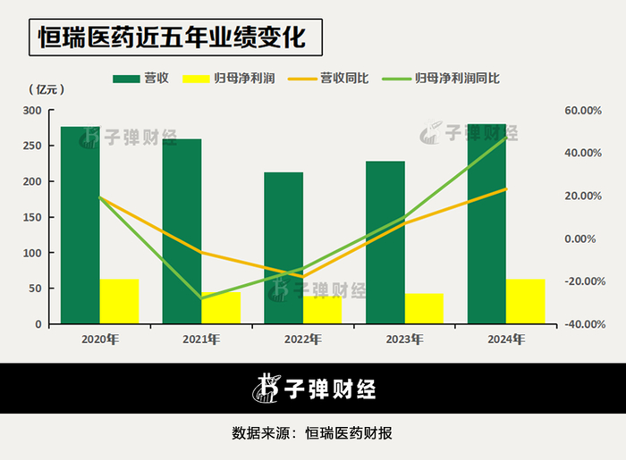恒瑞医药作为医药头部企业,正经历着这样一场艰难的转型之路。回顾近五年业绩,恒瑞医药曾在仿制药集中带量采购的浪潮下受挫,2021年、2022年,公司业绩连续两年下滑。